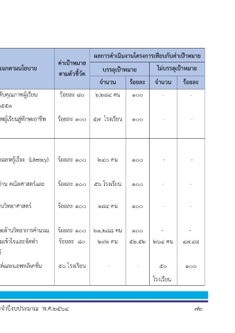 ตัวชี้วัดท ๖ จำนวนโรงเรียนในสังกัดที่เข1ารGวมการพัฒนาทักษะการใช1เครื่องมือสร1างเว็บไซตvและแอพพลิเคชั่น ๕๐ โรงเรียน - - ๕๐ ๑๐๐